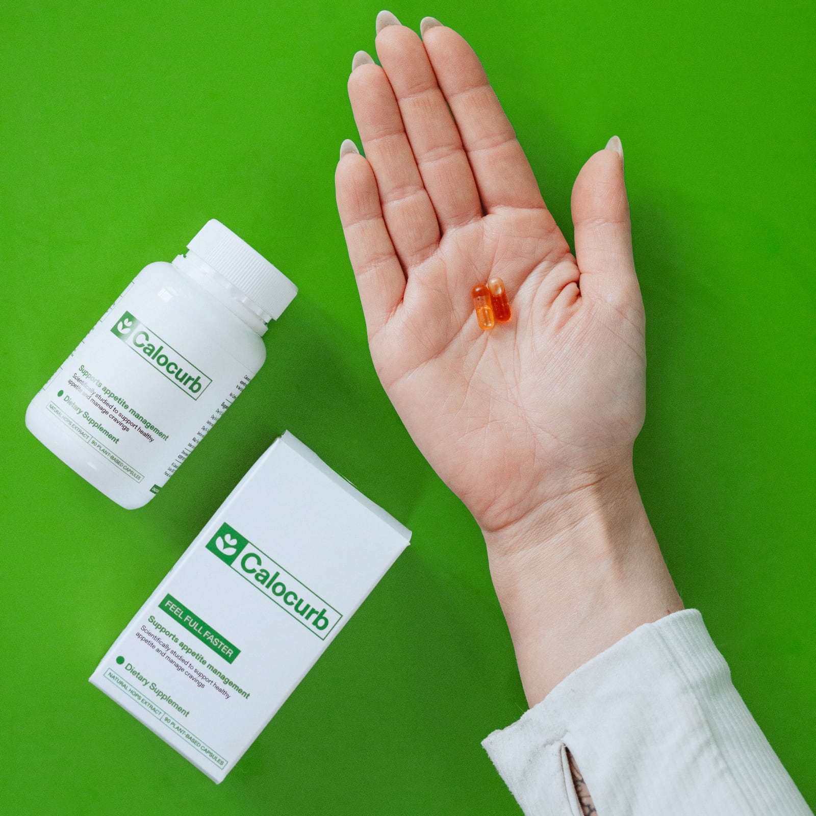 Calocurb is a 100% natural appetite control capsule featuring Amarasate®, a patented hops extract developed in New Zealand over 15 years with $30 million in research by Plant & Food Research. Clinically shown to help reduce cravings by 40%, hunger by 30% and reduce average calorie intake by 18% in just one hour.